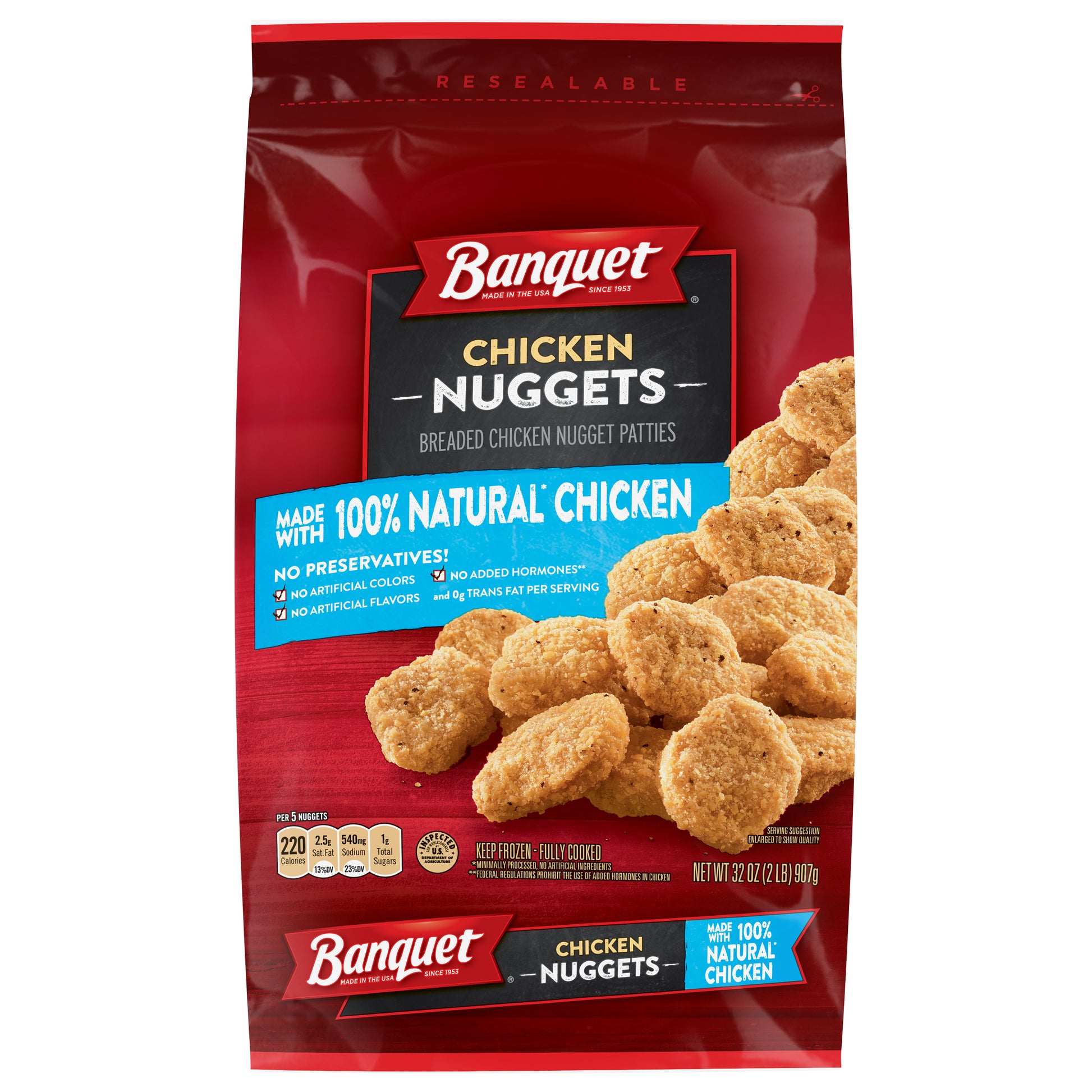 Since 1953. No preservatives! No artificial colors. No added hormones (federal regulations prohibit the use of added hormones in chicken). For over 60 years, Banquet has been making delicious food the whole family loves. So, it's no surprise that these Chicken Nuggets are perfect for anyone to enjoy any time. Proudly made in the USA.