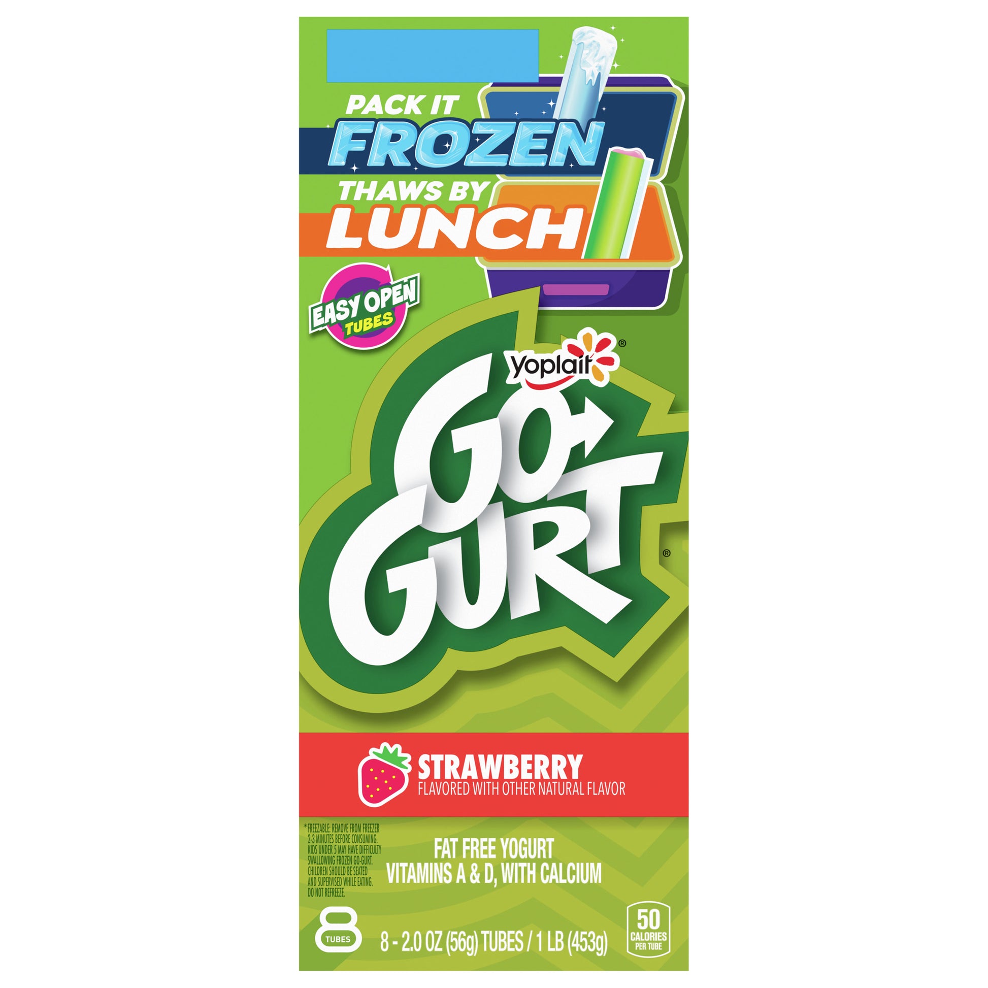 Go-GURT Strawberry Kids Fat Free Yogurt, Gluten Free, 2 oz Yogurt Tubes (8 Count)
