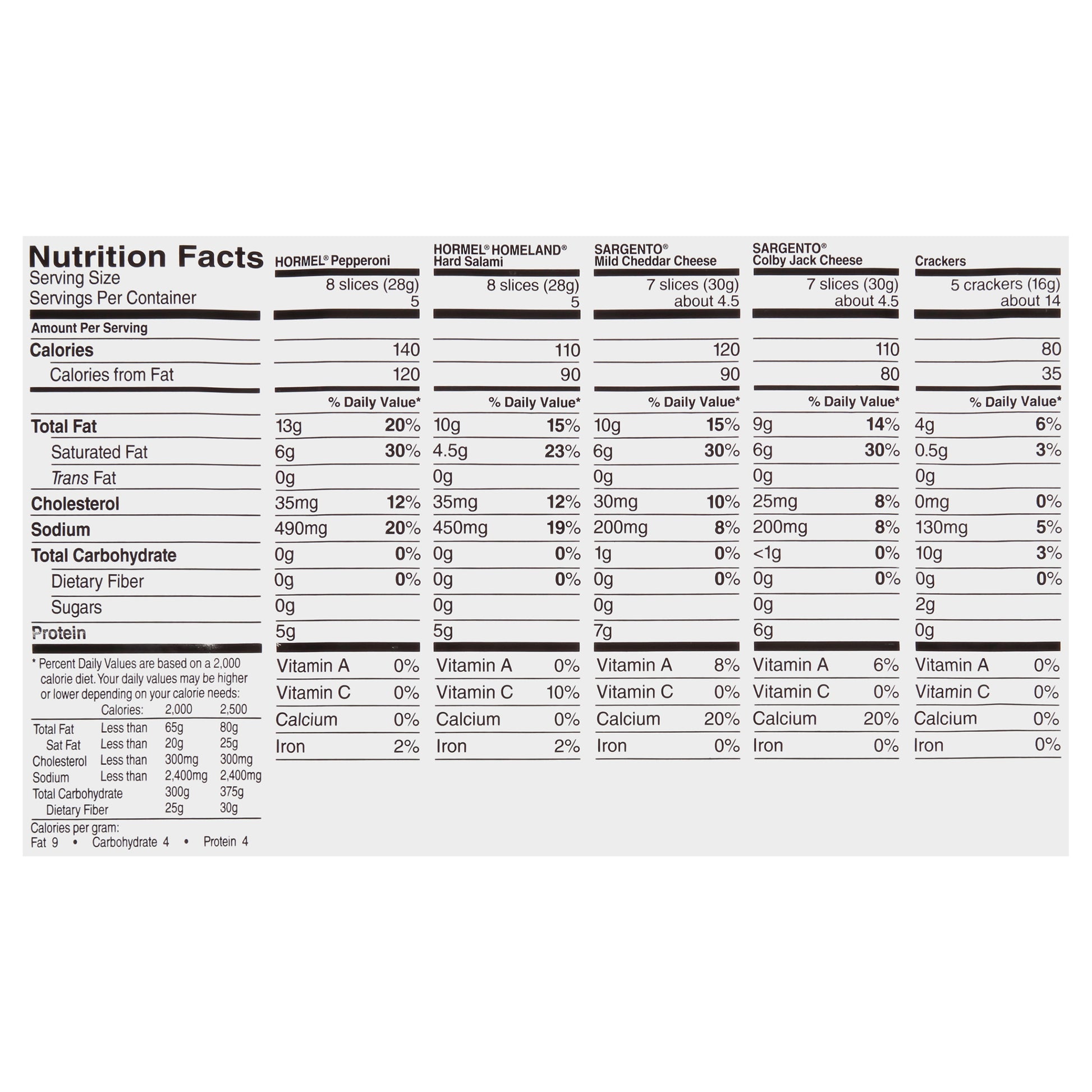 Contains: Hormel® Pepperoni and Hormel® Hard Salami BHa, BHT with Citric acid added to Help Protect Flavor, Sargento® Colby Jack Cheese, Sargento® Mild Cheddar Cheese, Round Crispy Crackers U.S. inspected and passed by Department of Agriculture www.hormel.com 1-800-523-4635