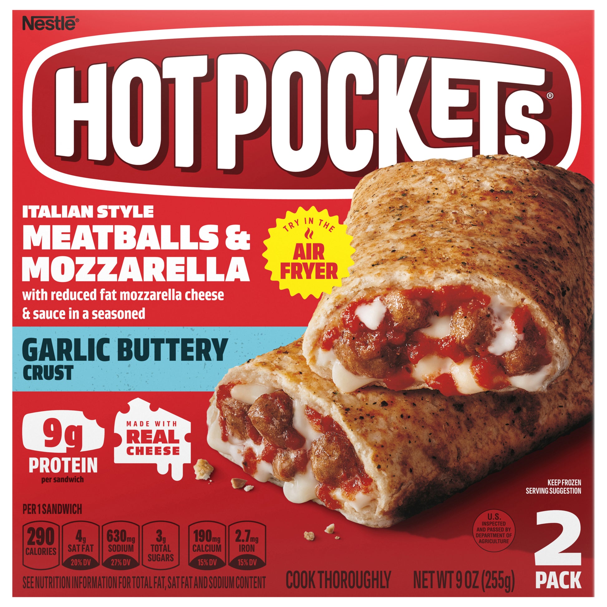 Hot Pockets Italian Style Meatballs and Mozzarella Frozen Snacks, Pizza Snacks Made with Reduced Fat Mozzarella Cheese, 2 Count Frozen Sandwiches 9 oz.