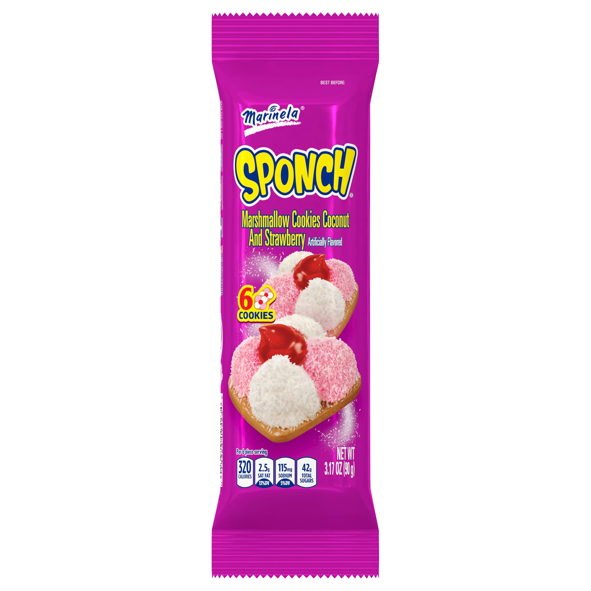 Marinela Sponch Coconut and Strawberry Marshmallow Cookies, 6 count, 3.17 oz